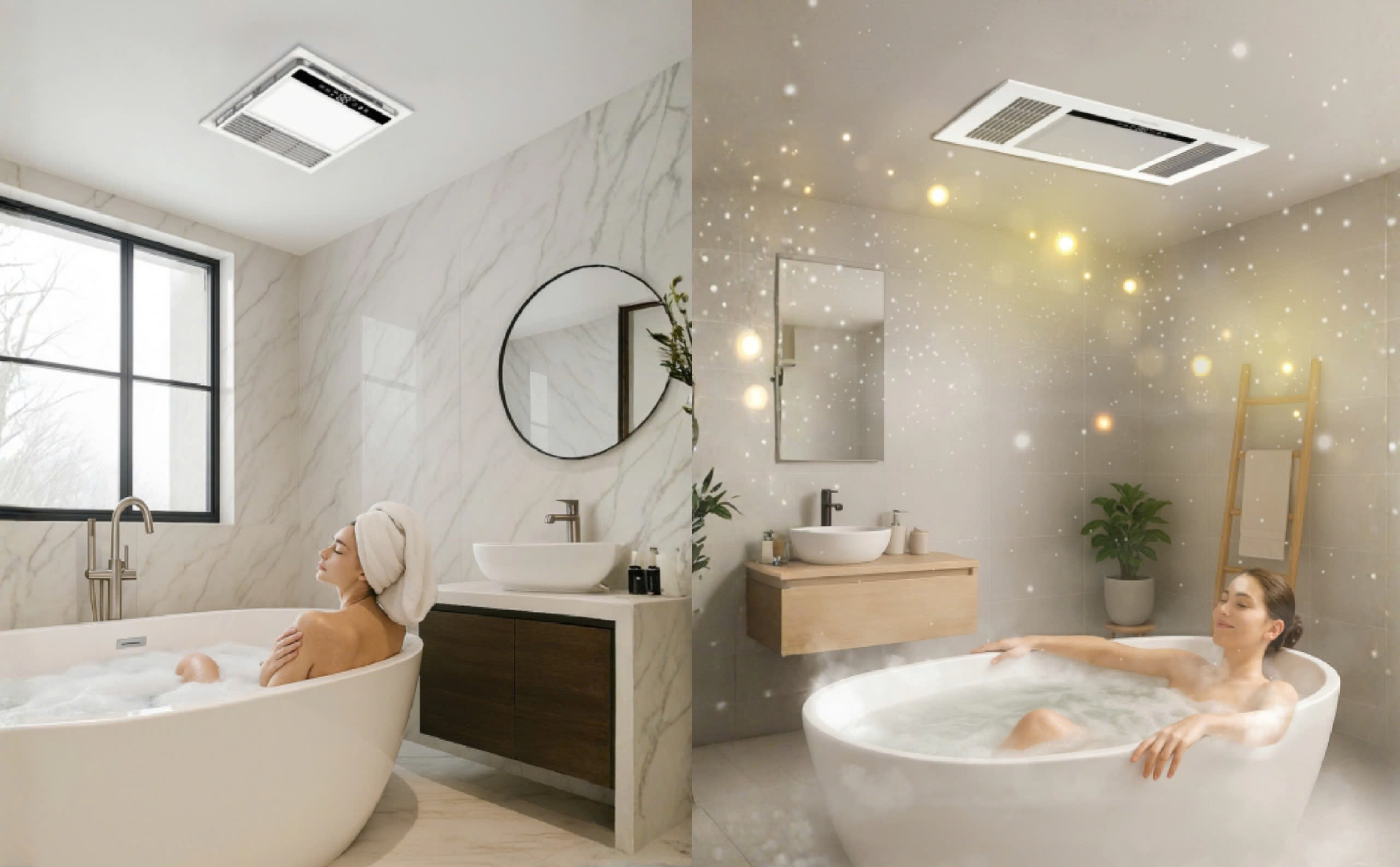 Phòng tắm là nơi được sử dụng nhiều nhất mỗi ngày nhưng cũng là khu vực dễ gặp vấn đề nhất: ẩm ướt kéo dài, hơi nước bám trên gương, mùi khó chịu, bí hơi, lạnh buốt khi tắm mùa đông, ánh sáng tối hoặc chói, đặc biệt trong căn hộ không có cửa sổ hoặc gia đình đông người.