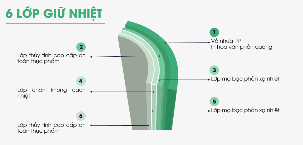 | Giữ nhiệt: | Giữ nóng sau 12h và giữ lạnh sau 24h |