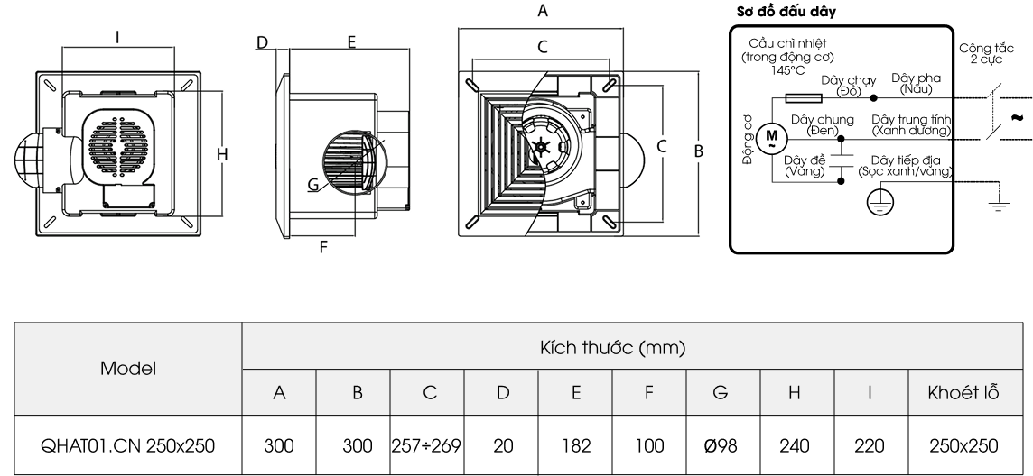 | Kích thước khoét lỗ: | (250 x 250)±5 mm |
