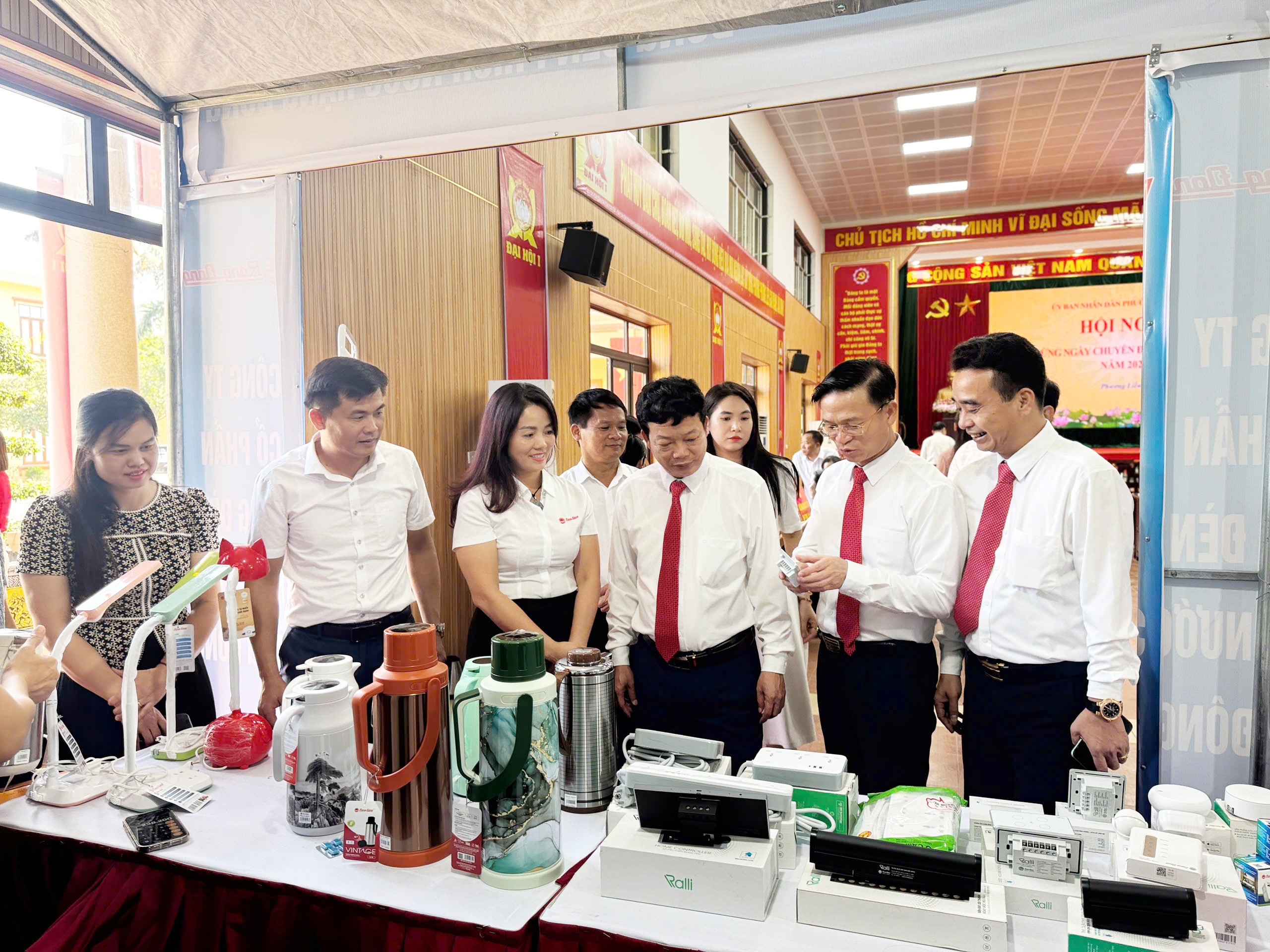 Lãnh đạo Phường Phương Liễu trải nghiệm thiết bị điện thông minh Rạng Đông tại gian hàng