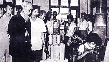 Bác Hồ thăm phân xưởng Bóng đèn Rạng Đông