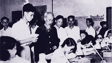 Chủ tịch Hồ Chí Minh thăm và nói chuyện với công nhân viên chức