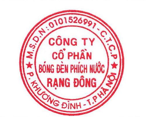 Tên doanh nghiệp: CÔNG TY CỔ PHẦN BÓNG ĐÈN PHÍCH NƯỚC RẠNG ĐÔNG