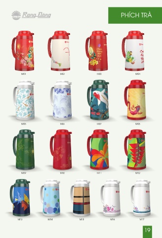 PHÍCH TRÀ M01 M02 M03 M04 M05 M06 M07 M08 M09 M10 M11 M12 VẬT LIỆU: Thân: Thép lá tráng thiếc có hoa văn Vai: Nhựa PP Ruột: Thủy tinh cao cấp M13 M14 M15 M16 M17 19